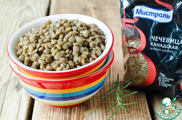 Для этого рецепта нам понадобится зеленая чечевица марки Мистраль, которую необходимо отварить согласно инструкции на упаковке.