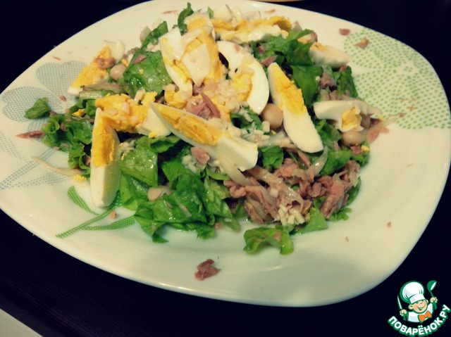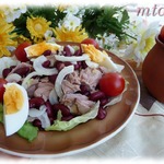 [+5]ПыСы. Лук я мариновала-таки в заправке, но исп-ла свежее масло, т.к. тунец был в собст.соку. Заправку с луком распределила 2/3 на присоленный салат (айсберг), а затем - 1/3 - вконце.