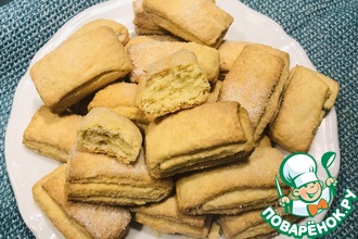 Рабочую поверхность присыпаем мукой, раскатываем тесто 3-4 мм и при помощи стакана вырезаем кружочки.