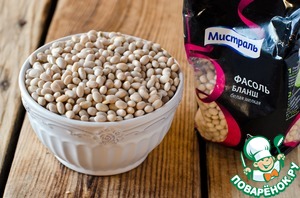 Для этого рецепта на понадобится белая фасоль марки Мистраль. Ее необходимо замочить на ночь, а затем отварить.