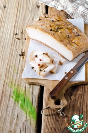 Теперь сало (у меня копченое) нарезать кусочками и обжарить до румяности.