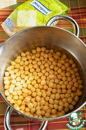 Нут замочить на ночь в холодной воде. Промыть и отварить до полуготовности.