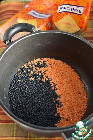 - Чечевица (100 г - черной, 100 г - красной) — 200 г