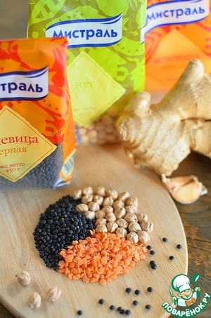 Ингредиенты для «Контрастный суп с чечевицей и нутом»: