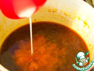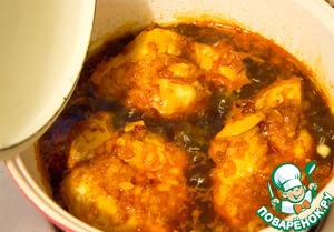 Залить соусом и томить около 1 часа. В середине готовки перевернуть.