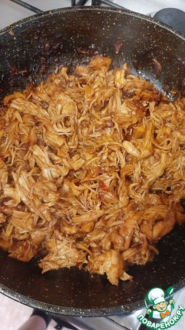 Выложить курицу обратно в соус, перемешать, накрыть крышкой и готовить еще около 15 минут.