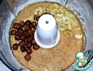 Всё измельчила. В массу добавила два вида орехов и снова измельчила.