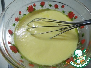 • Добавляем к яйцам сметану и растопленное сливочное масло. Перемешиваем.