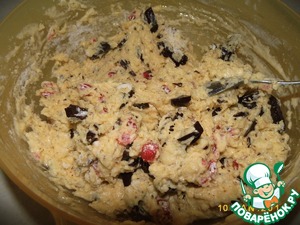 • Теперь соединяем сухую и сырую часть. Перемешиваем, буквально секунд 10, чтоб муки не стало видно.