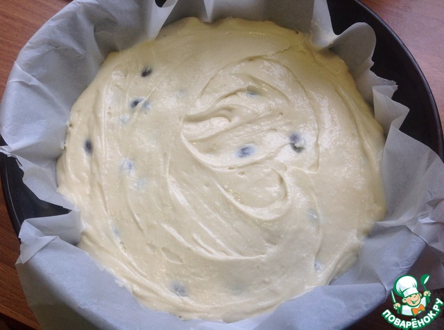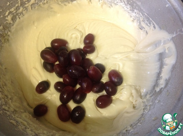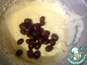 В тесто добавить виноград (целый, не резать) и аккуратно перемешать