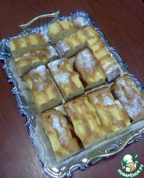 Яблоки очищаем от кожуры, произвольно нарезаем и выкладываем сверху на пирог, не вдавливая. Отправляем пирог в духовку на 40 мин при 180 гр
