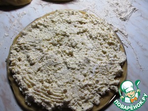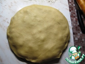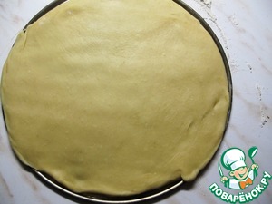 Для выпечки необходима разъемная форма. Раскатываем одну часть теста по размеру формы и выкладываем на низ формы.