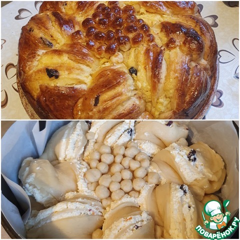 Простой в приготовлении, очень нарядный сдобный пирог интересной формовки. Можно пофантазировать с начинкой. Идеально для воскреснего семейного чаепития.