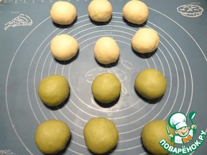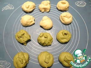 Продолжаю делиться новыми идеями формовки булочек. За идею благодарю японских кулинаров. Можно приготовить такие булочки разных цветов, я же использовала белое тесто и подкрашенное порошковым чаем матча, именно так и готовились булочки в оригинальном рецепте. Все очень просто!
