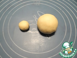 Беру один кусочек теста, отщипываю кусочек теста весом около 6-8 грамм, снова формую из двух кусочков теста шары.