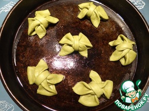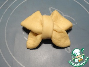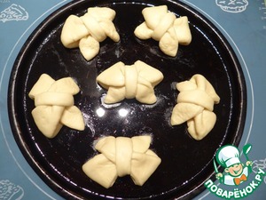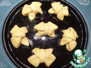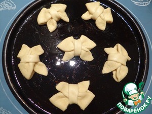 Таким же образом формую остальные бантики. Перекладываю заготовки из теста на смазанный растительным маслом противень.
