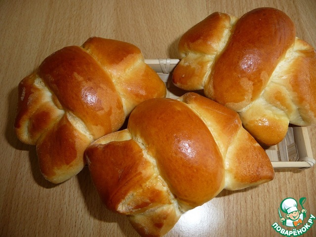 - Яйцо куриное (в тесто - 2/3 шт; остальное для смазывания булочек ) — 1 шт