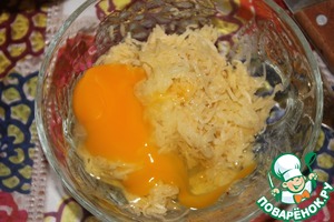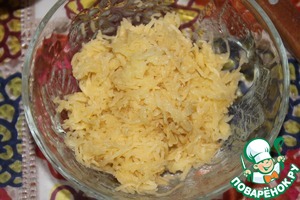 Картошку трем на мелкой терке. Выжимаем из нее сок.