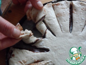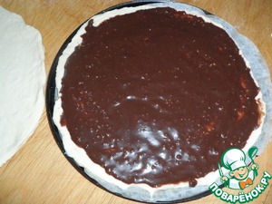 Смазать круг из теста полностью охлажденной шоколадной пастой и накрыть другим кругом.