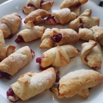 Положить клюкву на середину заготовки и свернуть тесто в рулончик, закрепив края. Выпекать до подрумянивания корочки.