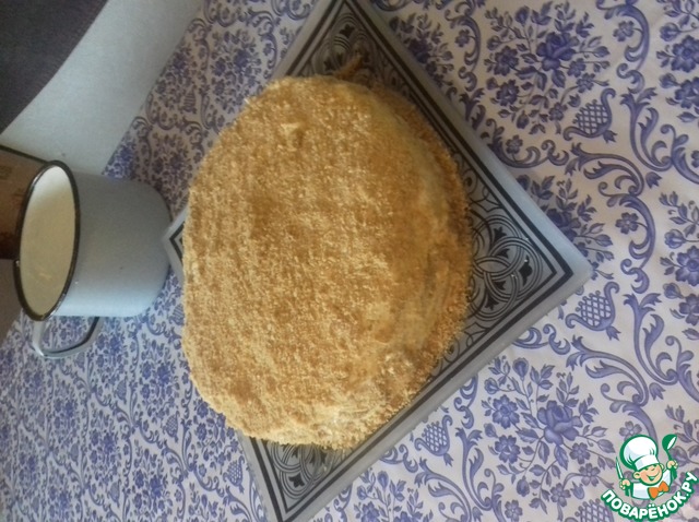 Верх и бока торта обсыпаем крошками из обрезков (я измельчаю на блендере, а можно и скалкой).