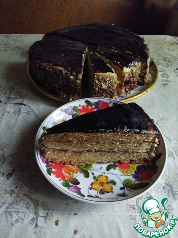 Торт лучше оставить на пропитку на несколько часов при комнатной температуре. А вот и разрез...