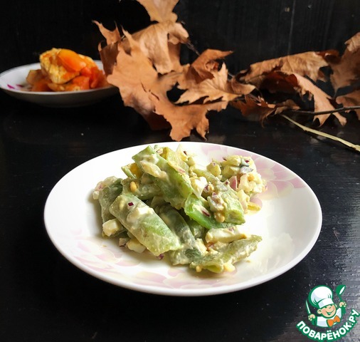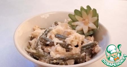 Самый простой салат из стручковой фасоли. Посмотрела здесь рецепты фасолевых салатов, такого не нашла, во всех больше ингредиентов. Уже не помню, откуда он у меня появился, но готовлю его больше 20-ти лет)