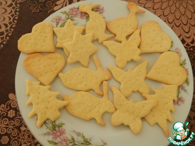 Далее раскатываем тесто очень тонко до 1 мм - чем тоньше, тем более хрустящим оно будет. Вырезаем печеньки, накалываем их вилкой.