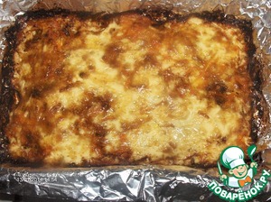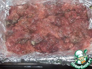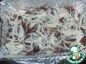 Печень укладываем в форму, смазанную растительным маслом. Солим и перчим.
