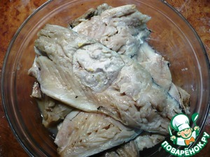 Способ приготовления этой рыбы мама увидела в какой-то кулинарной передаче давно. С тех пор готовим периодически. Получается необычно и очень вкусно.