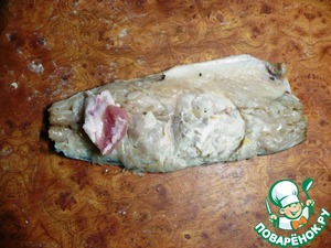 Бекон (пузанину) нарезать брусочками по количеству филе.