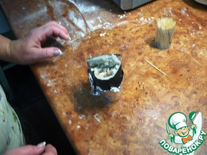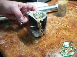 Скрепляем зубочистками, чтобы не распался наш рулетик.