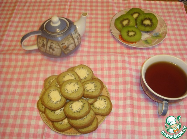 Предлагаю вам рецепт с использованием зеленого чая Маття (Матча). Этот чай очень популярен в китайско-японской кулинарии. Он используется для легких десертов, мороженого и тортов. На вкус он не слышен в этом печенье, но цвет придает совершенно иной. Итак угощайтесь!
