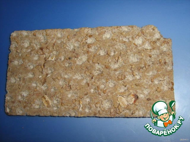 Берем любой хлебец, типа этого, можно использовать и мацу. Ломаем его на кусочки.