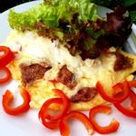 Хорошее настроение пришло еще перед завтраком - в результате получился замечательный омлет из моцареллы, черных шерри и хлебцев.