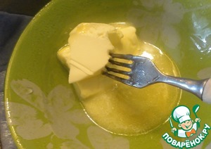 Из молока вынимаем гвоздику и выливаем его к яично-сахарной смеси. Сюда же добавляем мед. В емкости, гда топился мед, растапливаем сливочное масло.