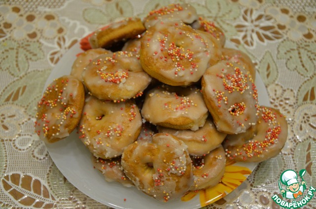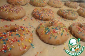 Готовим глазурь. Просто просеиваем сахарную пудру и добавляем в нее по одной 6 ст. л. лимонного сока или просто воды, если не хотите, чтобы у глазури была кислинка. Можно взять часть воды и часть лимонного сока. Смотрите на свой вкус. После каждой ложки жидкости, хорошо перемешиваем. Добавляем жидкость, пока не получим слегка жидковатую глазурь, которая будет при этом в меру растекаться. Обычно на 250 гр. сахарной пудры - 5-6 столовых ложек. Но лучше добавлять постепенно, чтобы не перестараться.