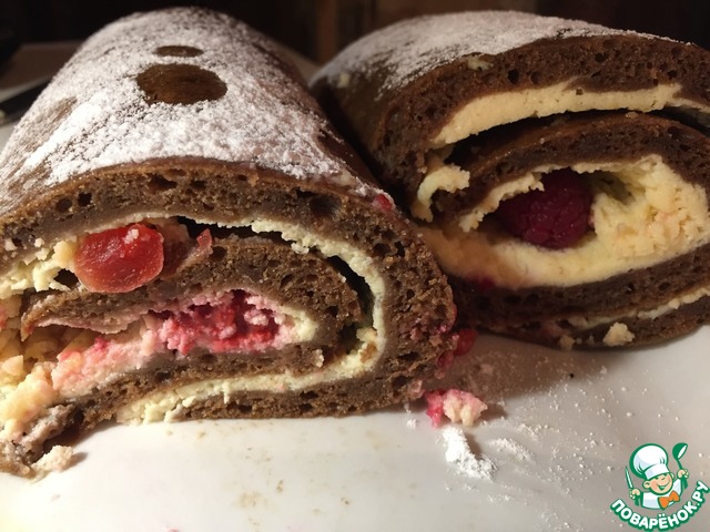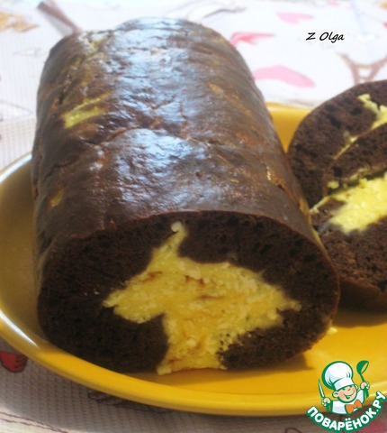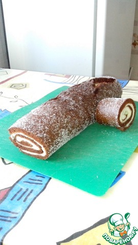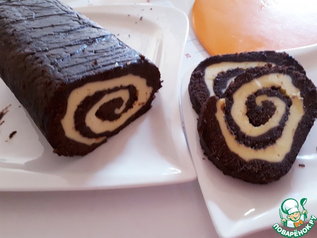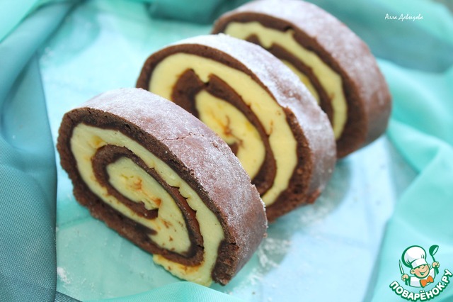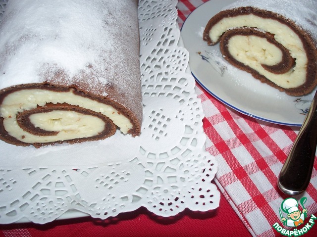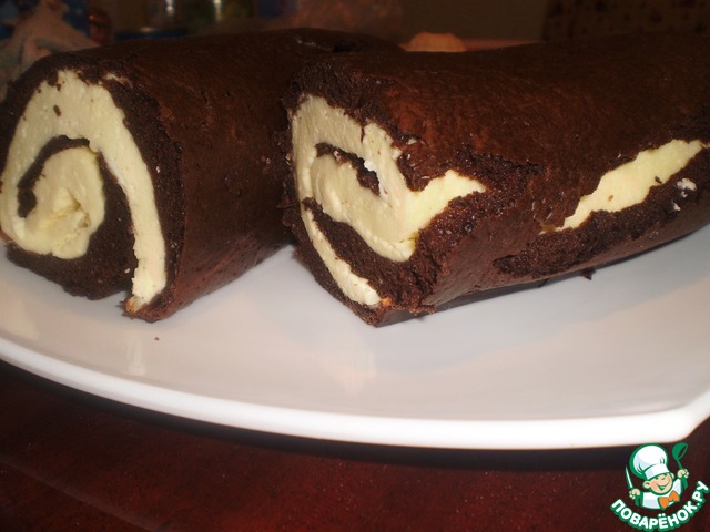 Рецепт «Шоколадный рулет с творожной начинкой»: