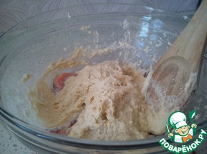 Добавить стакан муки и замесить тесто. Поставить в тёплое место на 20-30 минут