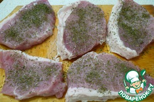 • Свинину помыть, обсушить бумажным полотенцем и порезать на порционные куски поперек волокон.