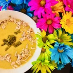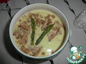 Супчик готов! Положить в тарелку пару вершков спаржи и сухарики.