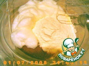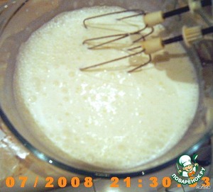 Взбить желтки с сах. песком и с ванильн. сахаром, влив 4 ст. л. горячей воды.