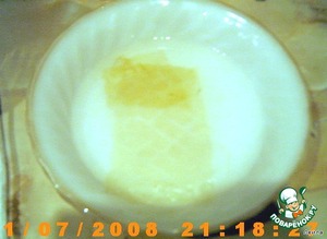 На картинке видно тонкий пласт - это желатин, его как раньше отмачивать не надо, просто залила горячей водой и он готов.