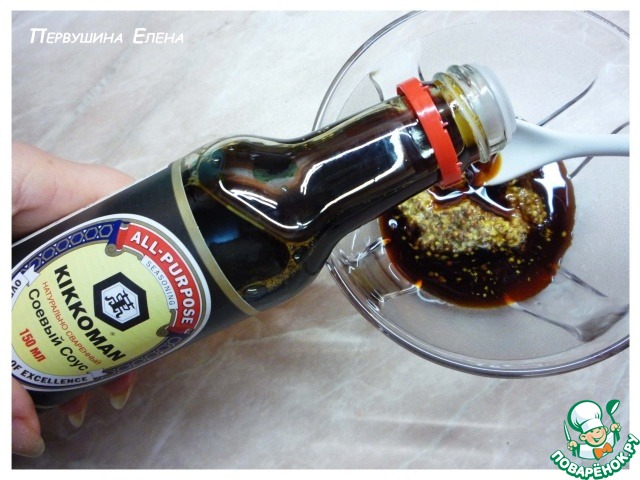 - Соевый соус (ТМ Kikkoman - по 2 ст.л. на маринад и на рис) — 4 ст. л.
