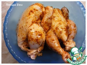 Безумно вкусное блюдо! Мясо, без преувеличения, просто тает во рту! А изумительный и пикантный маринад, в котором мариновались цыплята, оставляет за собой шлейф потрясающего аромата, даже после термической обработки.