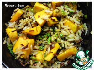 нарезанную кубиками тыкву и зелень укропа - перемешиваем. Повторюсь: тыква должна быть сладкой, иначе лучше заменить ее на яблоко.