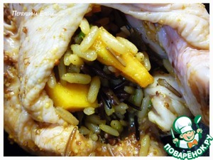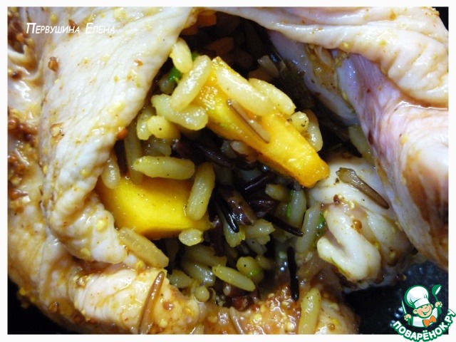и хорошенько снаружи и внутри обмазываем маринадом. Мариноваться должно не меньше часа при комнатной температуре.