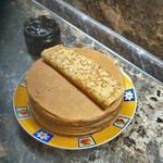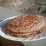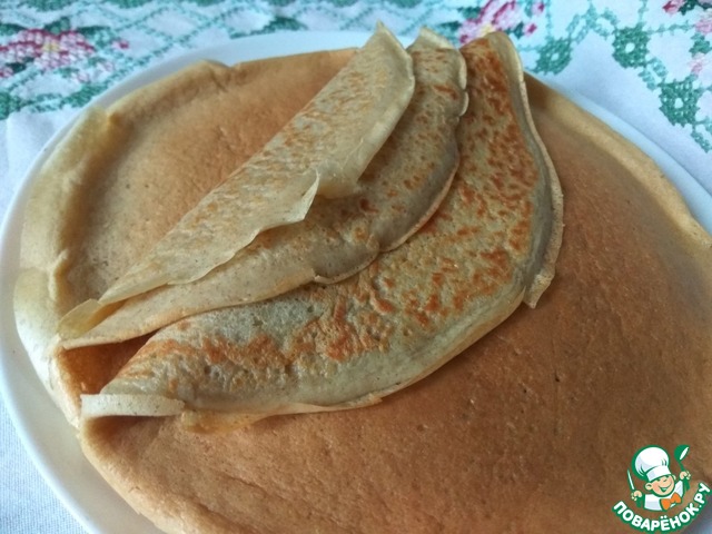 Но я обычно пеку блинчики очень тоненькие и здесь пыталась размазать их полностью по сковороде, от чего они получились неравномерными по толщине и рвались. В итоге стала тесто выкладывать столово ложкой не размазывая,делая блинчики в виде панкейков. Получилось вкусно. Буду готовить еще,попробую еще сделать их большого диаметра
