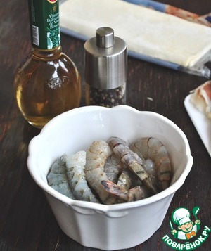 Креветки очистить от панциря, удалить кишечную вену, хвостик оставить.