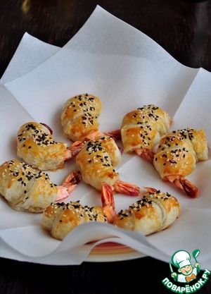 Рецепт «Мини-круассаны с креветками и пармской ветчиной»: